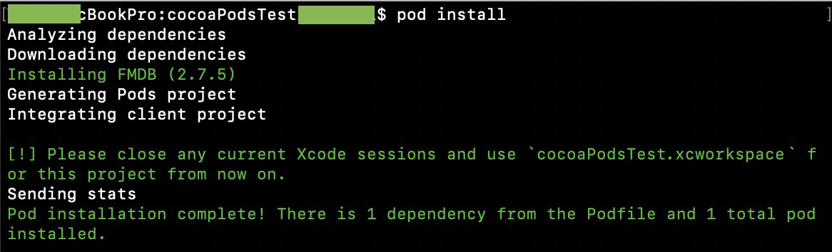 (주의) pod install 하기 전 열려있는 프로젝트를 반드시 닫고 실행해야 합니다.
