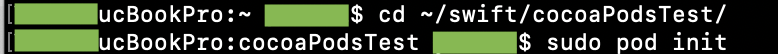 (주의) pod init을 하기전 디렉토리 위치는 반드시 프로젝트가 있는 폴더로 변경해주어야 합니다.