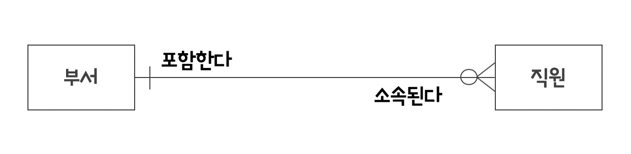 이 모델은 관계의 다(n)를 나타내기 위해 까마귀 발을 사용하기 때문에 때때로 까마귀 발모델(Crow’s Foot Model)이라 부른다.