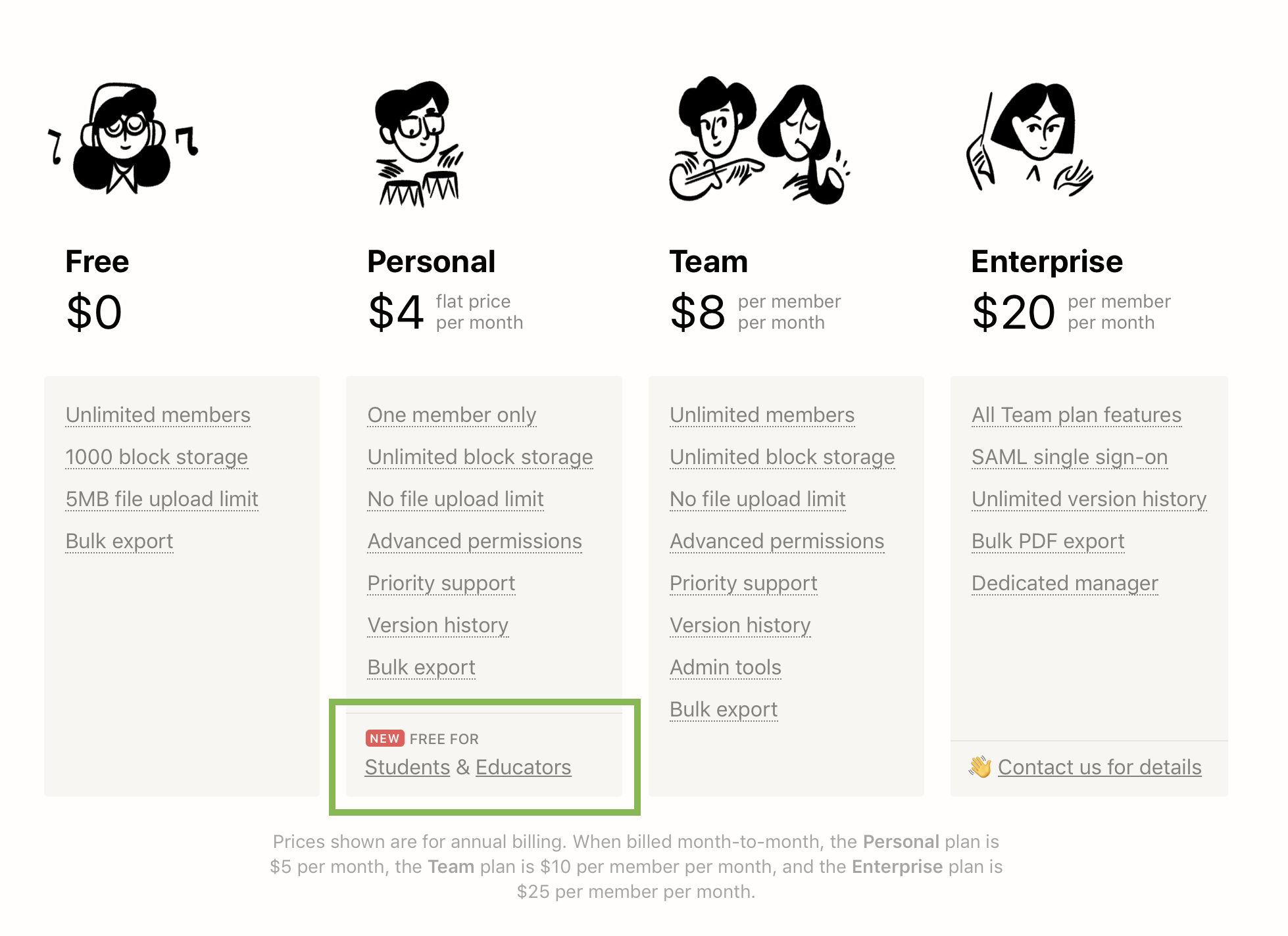 .ac 또는 .edu 도메인을 가진 학교 이메일을 통해 학생 인증을 받으면 Free에서 Personal로 무료 업그레이드가 가능합니다.