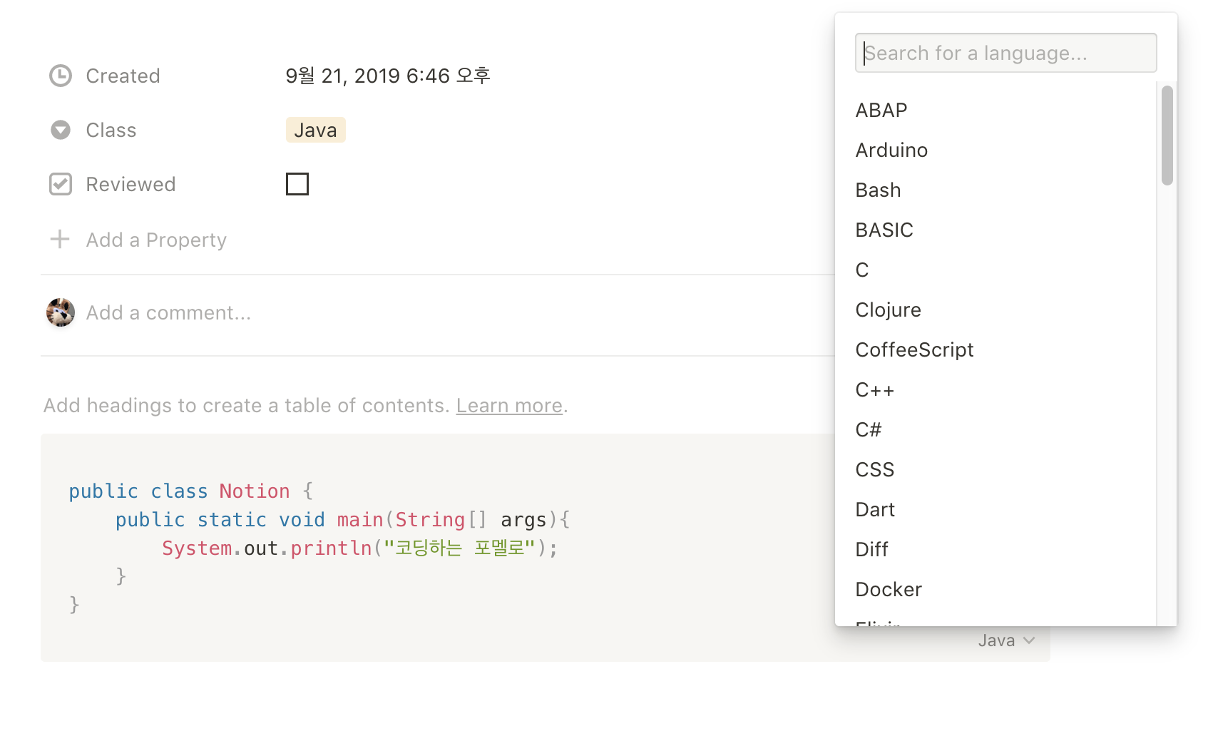 사용할 수 있는 언어가 매우 다양하며 gitHub도 넣을 수 있습니다.